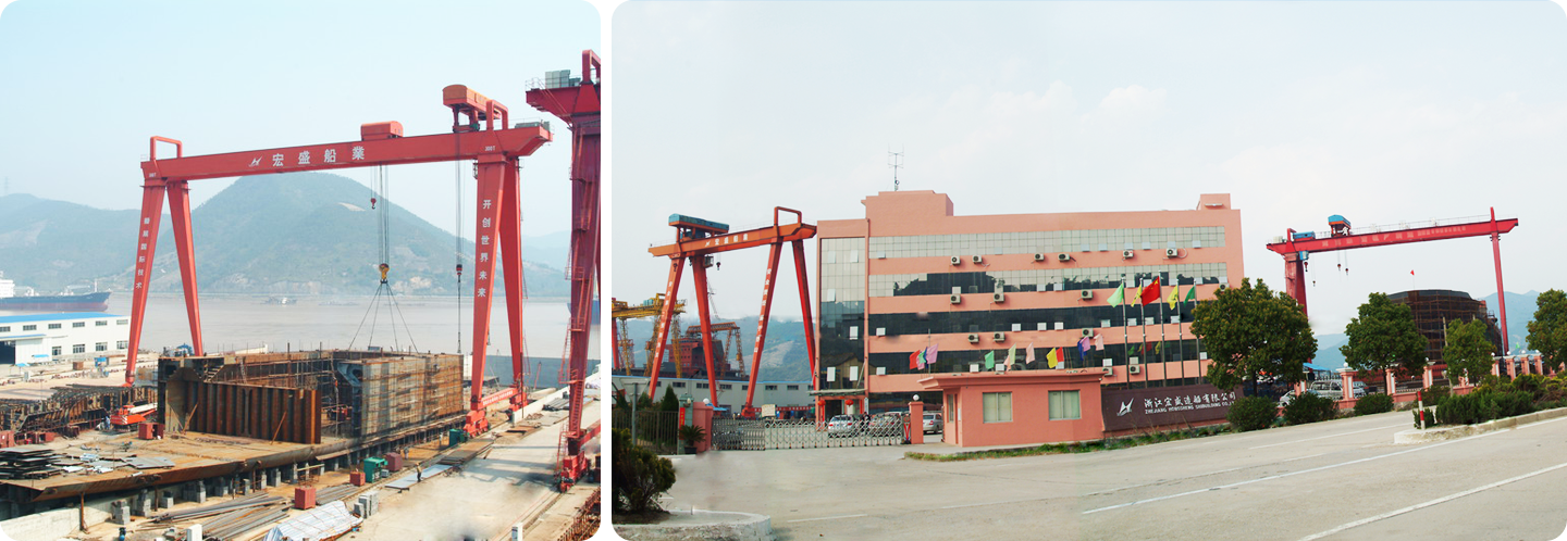 浙江宏盛造船有限公司成立于2004年,位于临海市汛桥镇开发区,北靠灵江、南临104国道,距临海南高速公路出口1公里,台州湾出海口30公里,水陆交通十分便利。公司占地面积13万平方米,海岸线长600米,江面水域开阔,是十分理想的造船基地。经过几年的发展,现已成为一家现代化的中型造船企业。